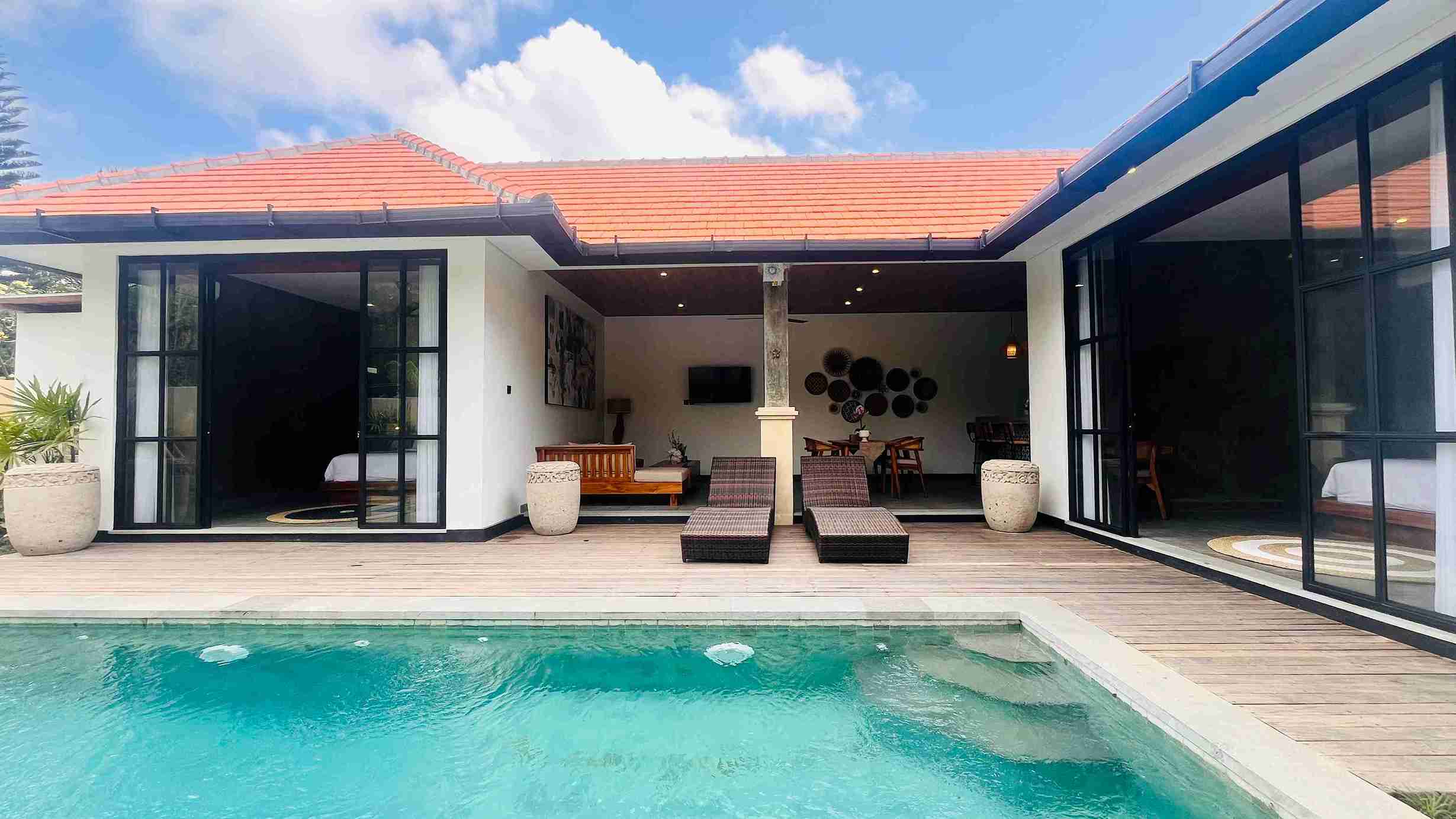 Both bedrooms are air-conditioned and come with ensuite bathrooms, making the villa ideal for couples, small families, or friends seeking comfort and privacy.